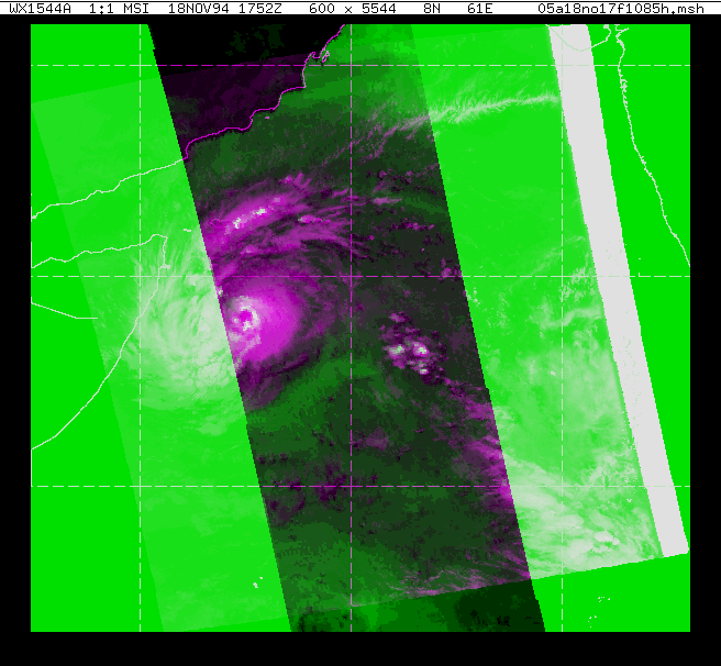 This is an IR/SSMI Multispectral image showing TC 05A (1994) - Note how